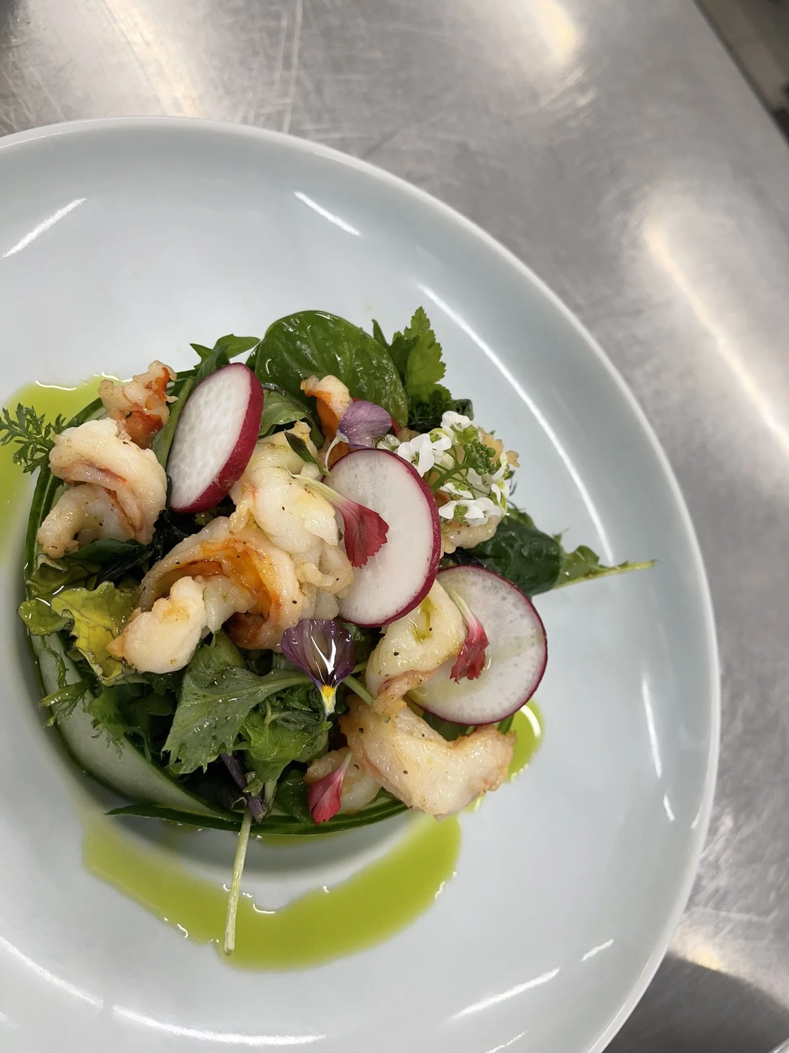 Sommersalat mit gebratenen Garnelen und einem Zitronen-Dressing